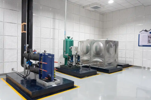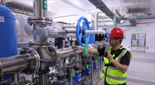 在城北凈水廠,有一位大家共同的“工作搭子”——污水源熱泵系統(tǒng)。這套全年無休的“冷暖管家”,以污水處理后的尾水作為提取能量的熱源,借助熱泵機(jī)組實現(xiàn)變廢為寶的綠色循環(huán):它所產(chǎn)生的能量能夠為辦公區(qū)域提供夏季制冷、冬季供暖服務(wù);每天能夠加熱產(chǎn)出60立方米55℃的熱水,供廠區(qū)使用;在冬季,還能夠滿足PAM加藥的加熱需求,確保工序穩(wěn)定運(yùn)行。這套系統(tǒng)通過污水熱源再利用,節(jié)約電能消耗,降低碳排放量,以科技硬實力踐行了綠色低碳的理念。